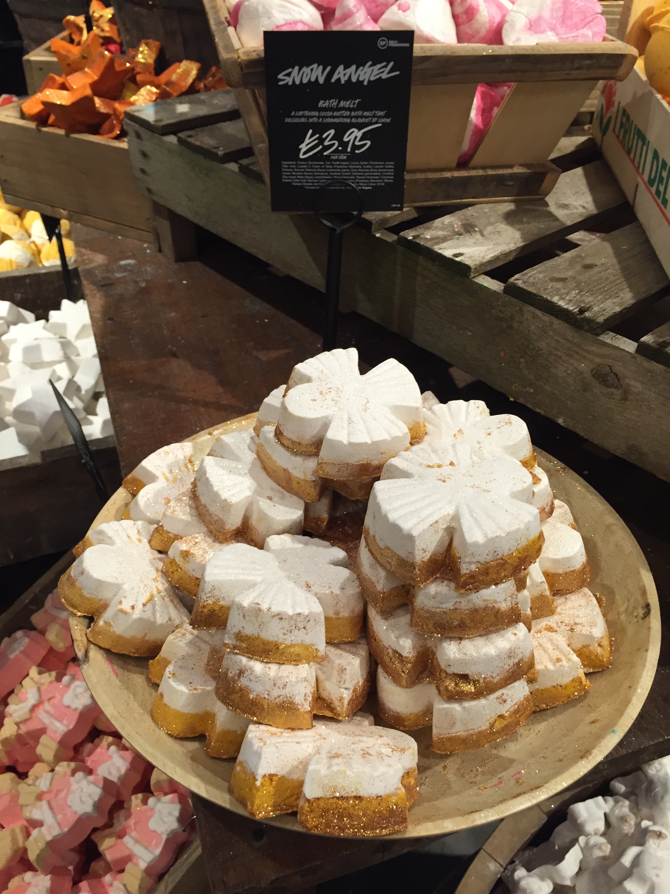 SNOW MELT BATH MELT: This is a perfectly white small bath melt , with a refreshing minty scent, and is currently a exclusive Oxford street product.