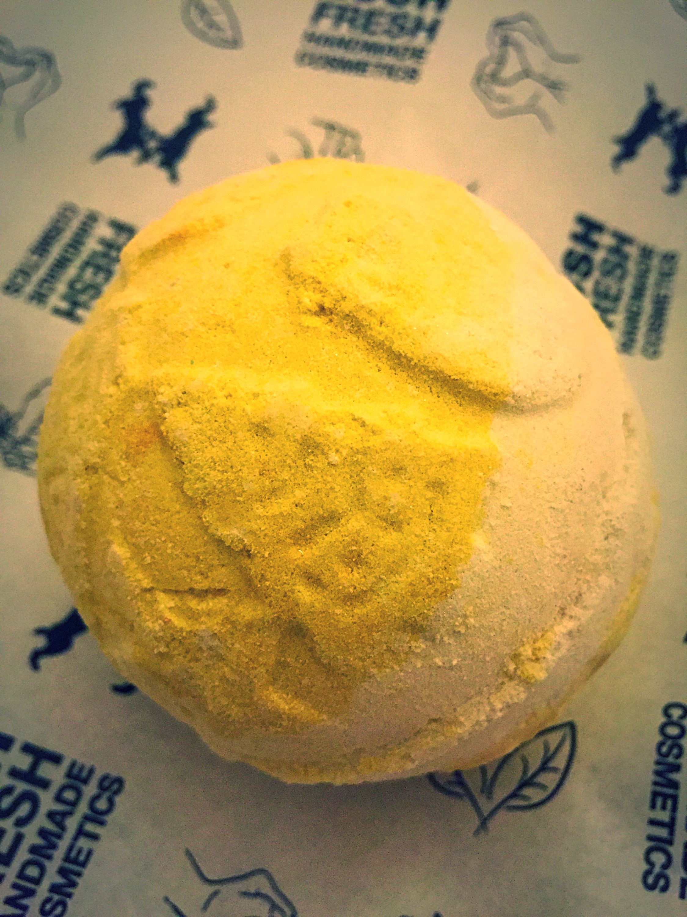 I first witnessed the yog nog bath bomb in action when I visited the Oxford street store. One of the lovely staff let my partner pick a product to put in the water for a demonstration and he chose the yog nog. This filled the store with a Gorgeous warming toffe scent and created my most lovely golden water.