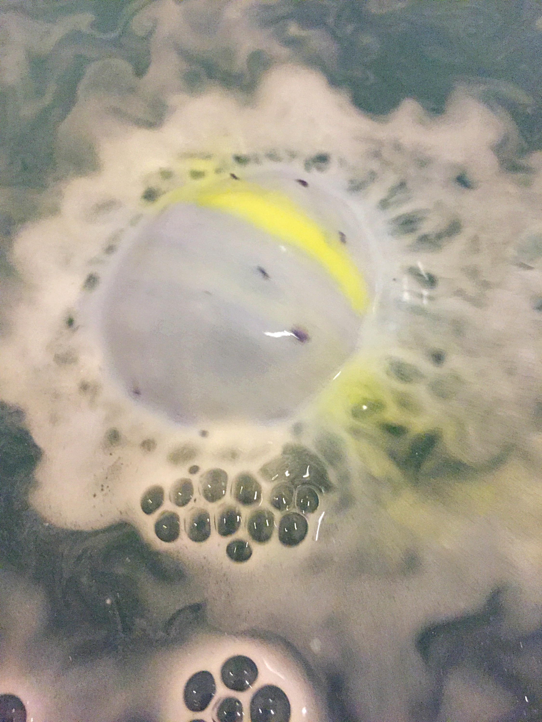 Once popped in the water it slowly starts to fizz away creating soft creamy foam that floats across the top of the water. Comoared to some of the other lush bath products, shoot for the stars is quite a slow fizzer but during this time it puts on the most spectacular show.