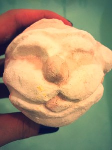 This large pale pink and white bath bombs apply features santas face on the front. I personally find this a little creepy but I know his cute looking face is loved by many. The whole appearance of this bath bomb is defiantly great for any Christmas lovers out there, as you can’t really get much more Christmassy than a little Santa face.