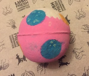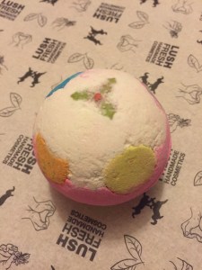 The luxury lush pud is a very nice large sized bath bomb, showcasing a bring pink and white design complete with multi coloured polka dots and even a very cute peice of holly on the top just like a little Christmas pudding.