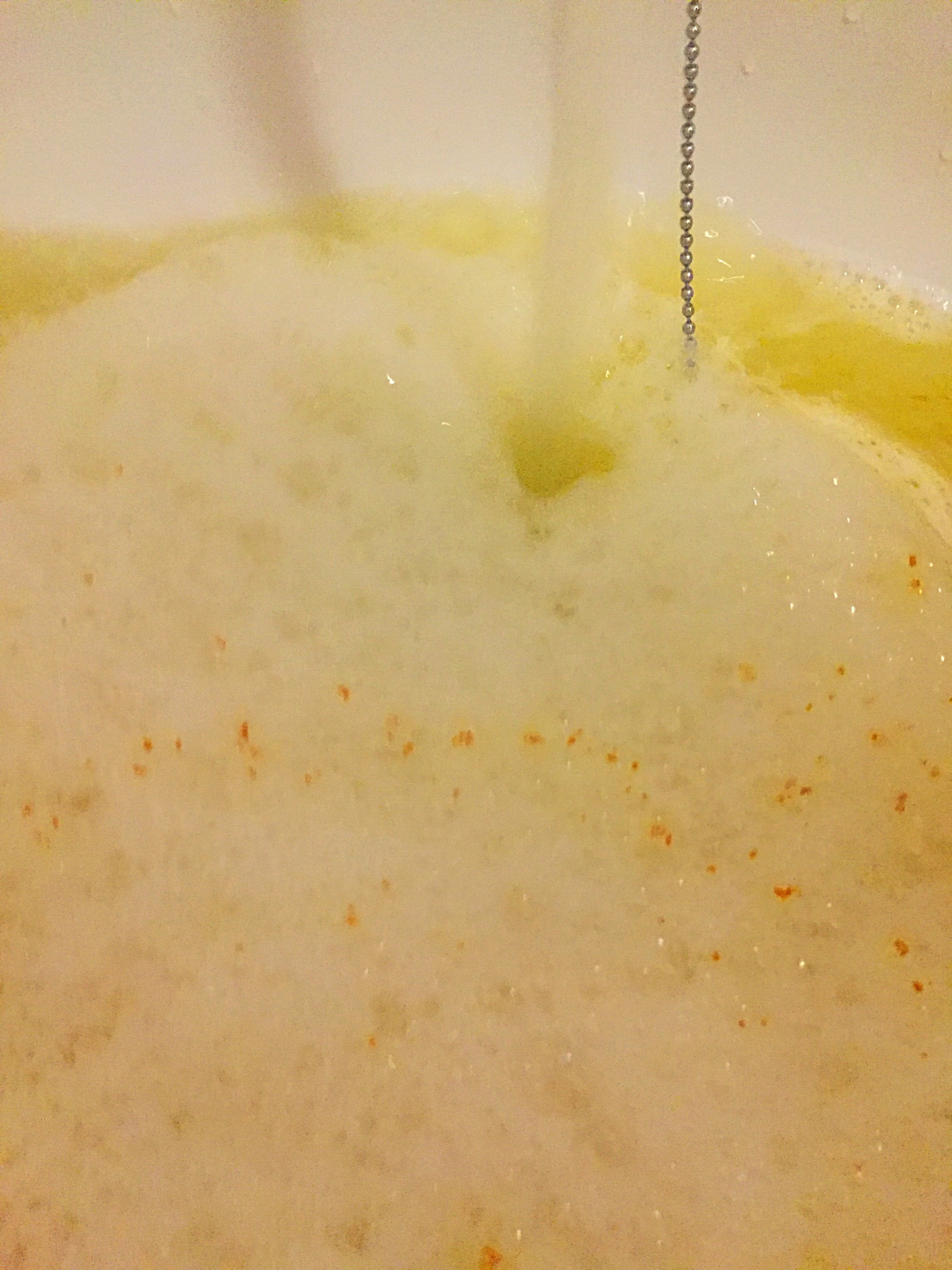 Once crumbled under the running water, it creates mountains of super soft sweet smelling bubbles. I was really impressed with how far a little of this bath bomb goes. The water also turns a lovely shade of gold with a slight golden shimmer from the glitter. The scent is really elevated when it hits the warm water aswell. Filling the room with is sweet scent.