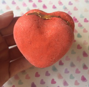 The scent of heart throb bubbleroon is very interesting and quite hard to describe. I’m also afraid to say it is one that I am not very keen on at all. Featuring ylang ylang, vanillia and frangipan the bubbleroon have a very flora scent, although i found the scent to be a very heady and spicy floral scent rather than a sweet floral scent. The scent is nice and strong though meaning that once crumbled into the water the scent is not completely lost and it is still possible to pick up elements of its floral notes.