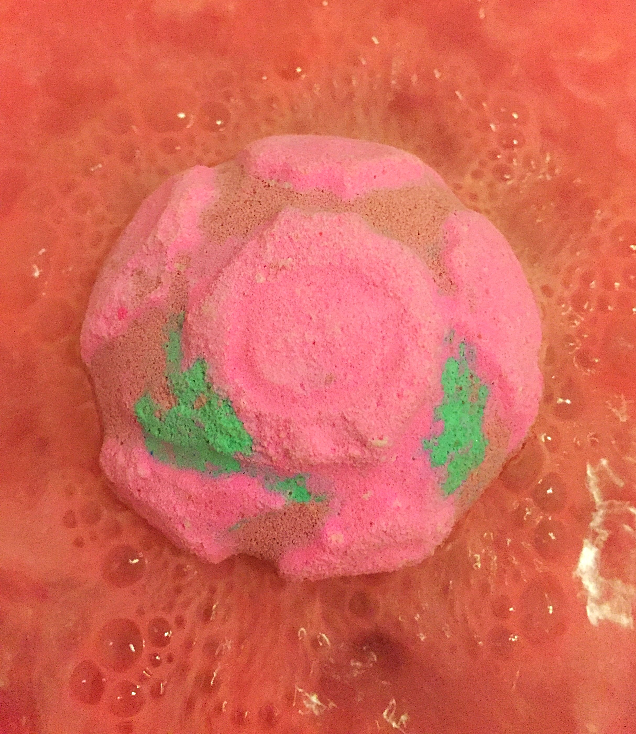 The Rose Bombshell first made its appearance last Mother’s Day (2015), this year it back again but has had quite a dramatic makeover. Last year the bath bomb was a simple white colour but this year it is the complete opposite, and is a beautiful rose pink colour, detailed with very intricate roses. This is defiantly one very pretty bath bomb indeed.