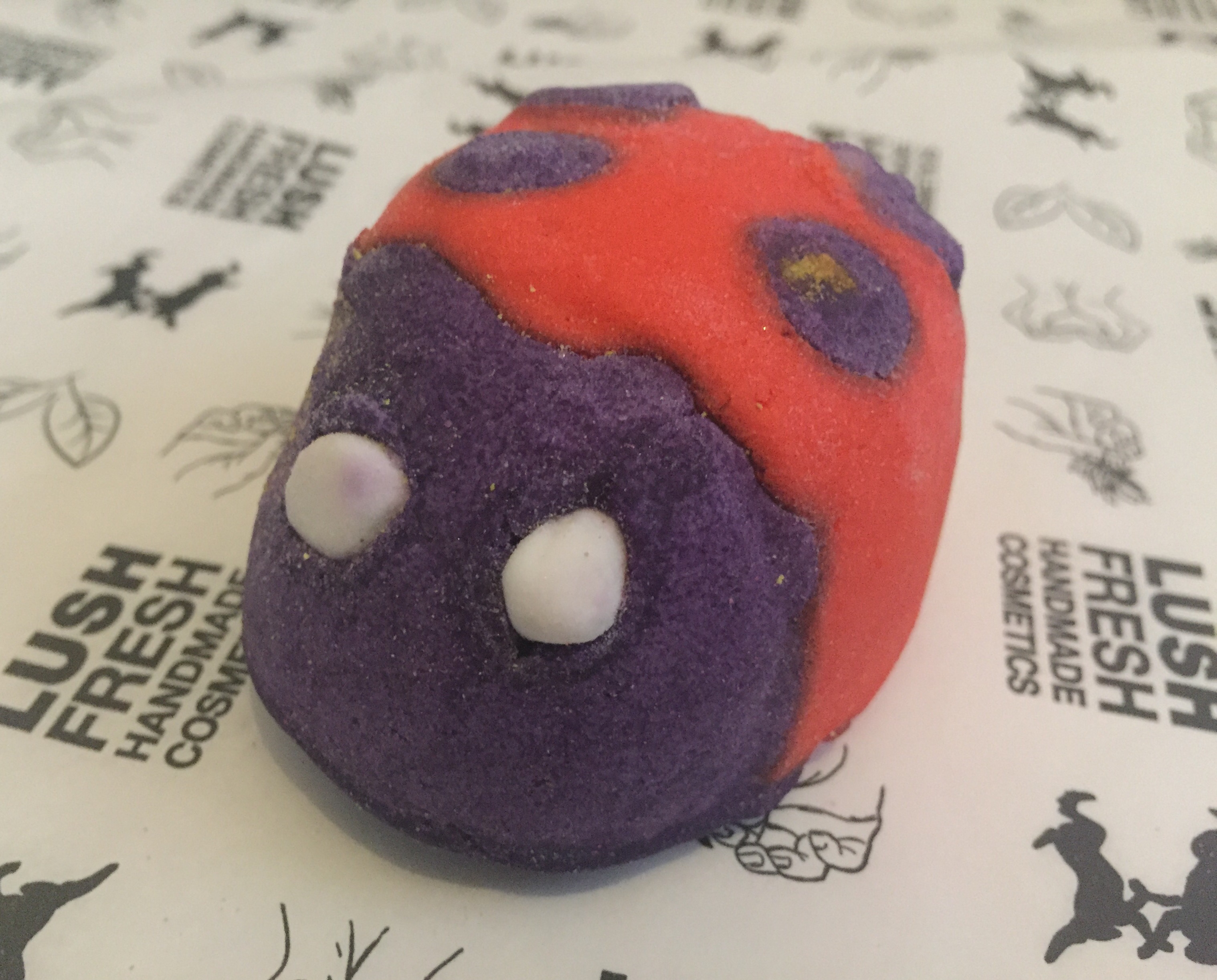 As well as being a new product, this product also features a scent that is also brand new to lush. I wasn’t really sure what scent this little bug would be at first, due to its bright colours. I thought it might have been a fruity scent. It turns out that the scent of the ladybird is a very intriguing, it has a very minty scent but with a slight sweet twist and a little fruity element thrown in there for good measure. To me the scent slightly reminds me of bubblegum crossed with the pear drops.