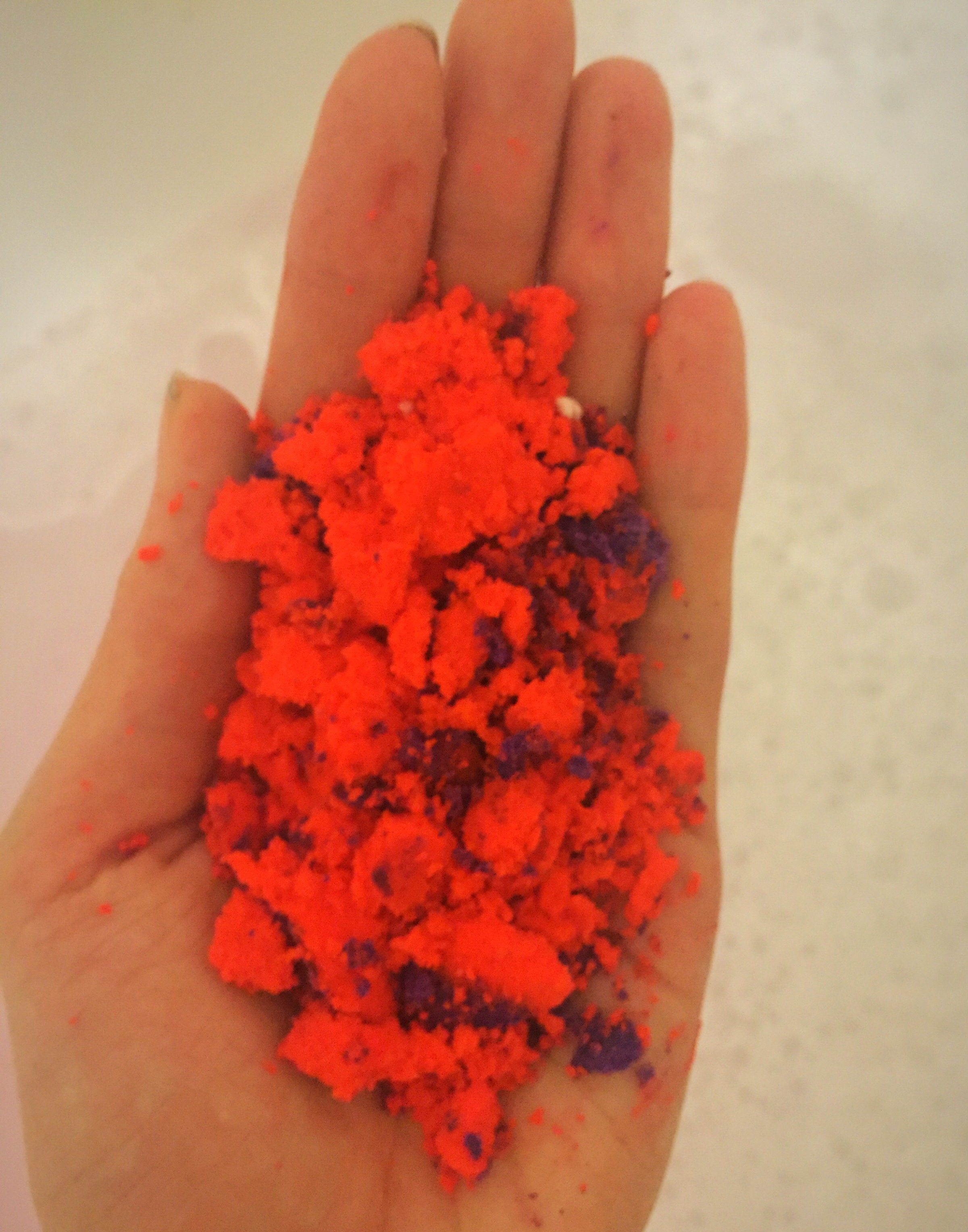 Ingredients- Sodium Bicarbonate, Cream of Tartar, Sodium Laureth Sulfate, Lauryl Betaine, Cornflour, Perfume, Geranium Oil, Peppermint Oil, Colour 45410, Colour 17200, Colour 42090.