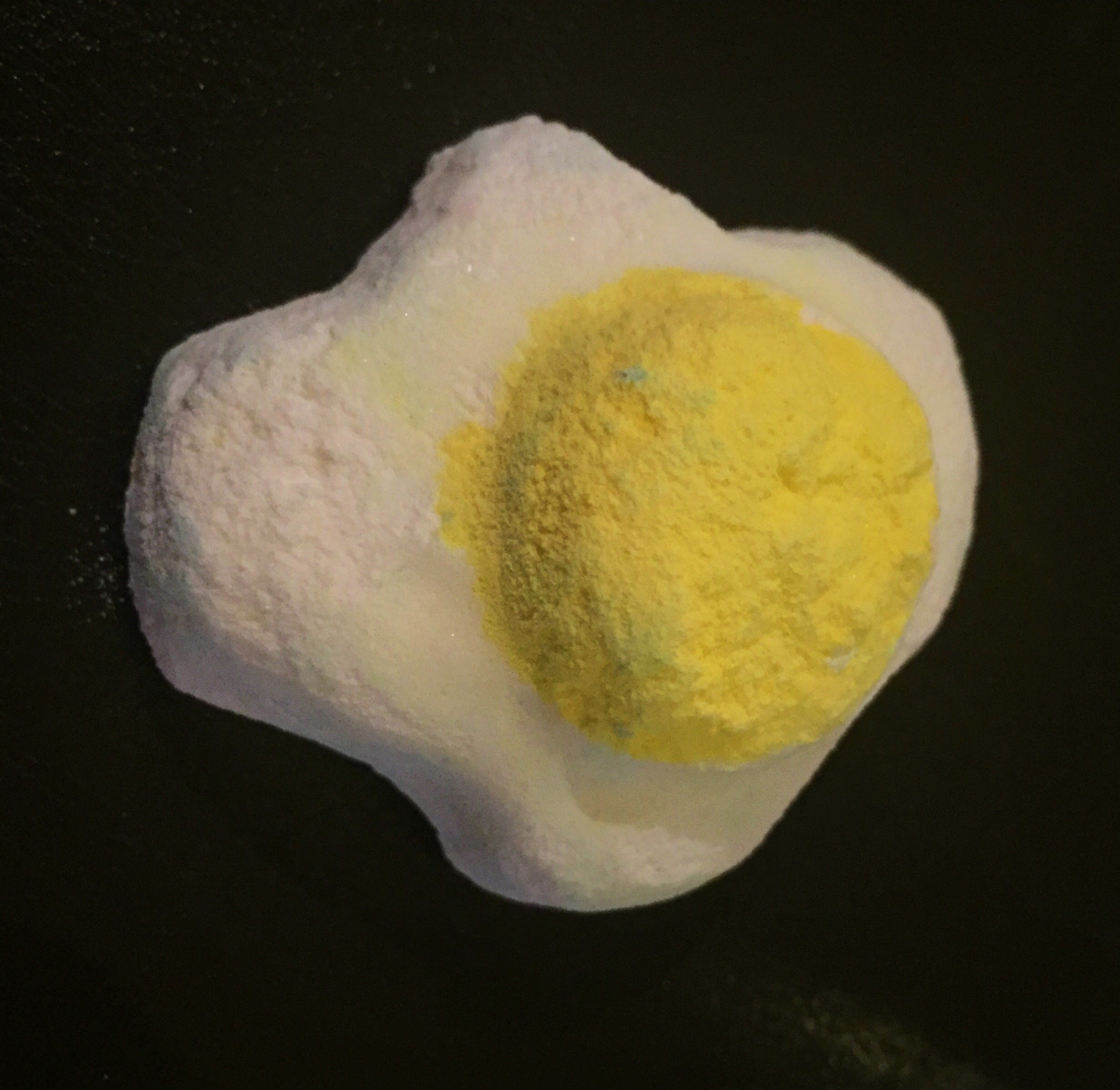 Although this bath bomb is a lot more exspensive than your average bomb, this product is actually designed to last you three baths, making it rather good value for money. All that you have to do is crack the egg in half (this is quite difficult so please be careful), which give you two halves to use in two seperate baths. Concealed in the centre of the product is a brilliantly designed little fried egg! This egg creates your third bath and also adds another fun and novel element to this already quirky product.