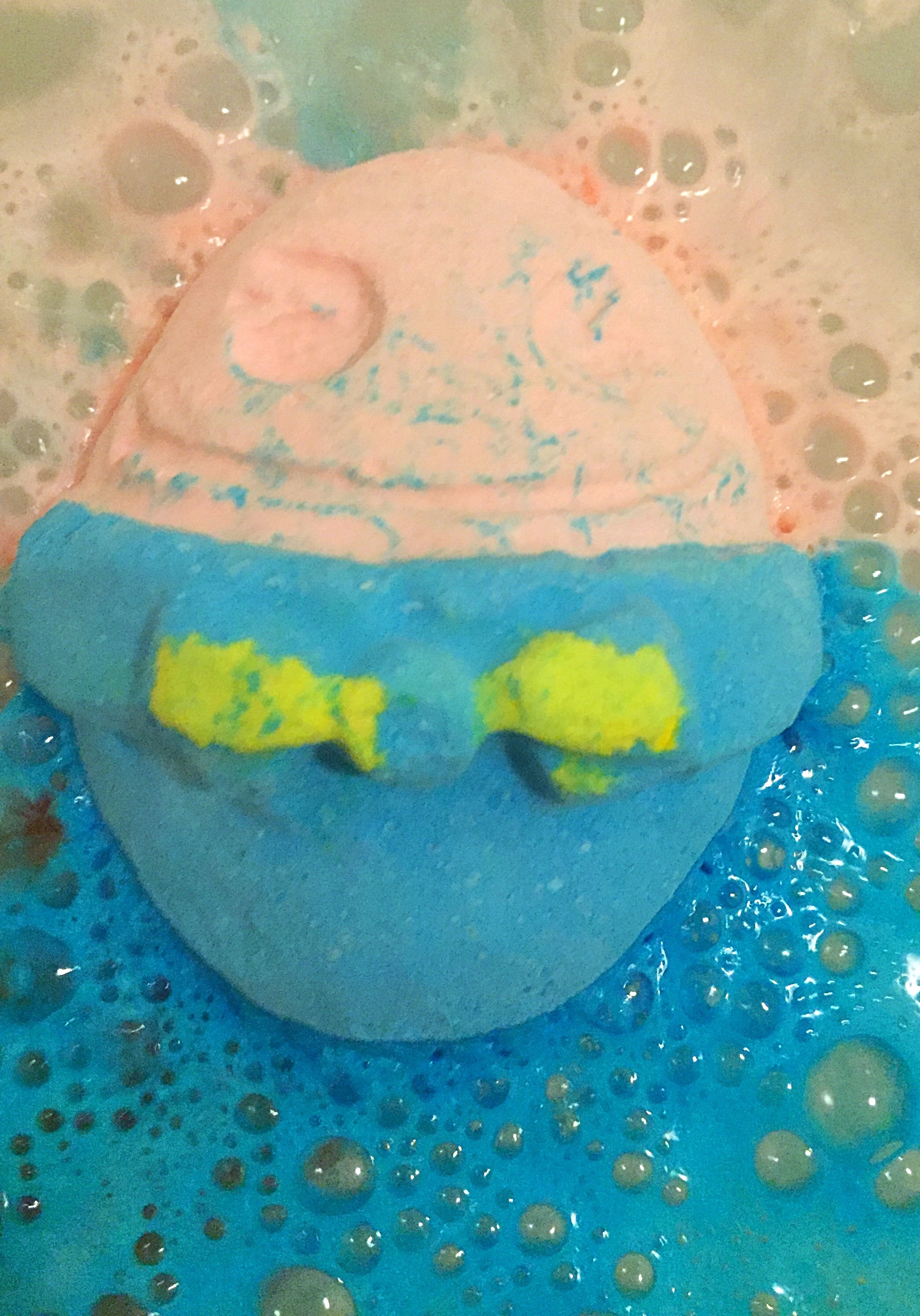 Once popped in the water this bath bomb does fizz very quickly, as it fizzes away it turns the water a very lovely blue colour and released its beautiful sweet caramel scent. I found this to be a very uplifting scent and found that the scent was strong enough to last the entire bath although I only actually use a third of the bath bomb.