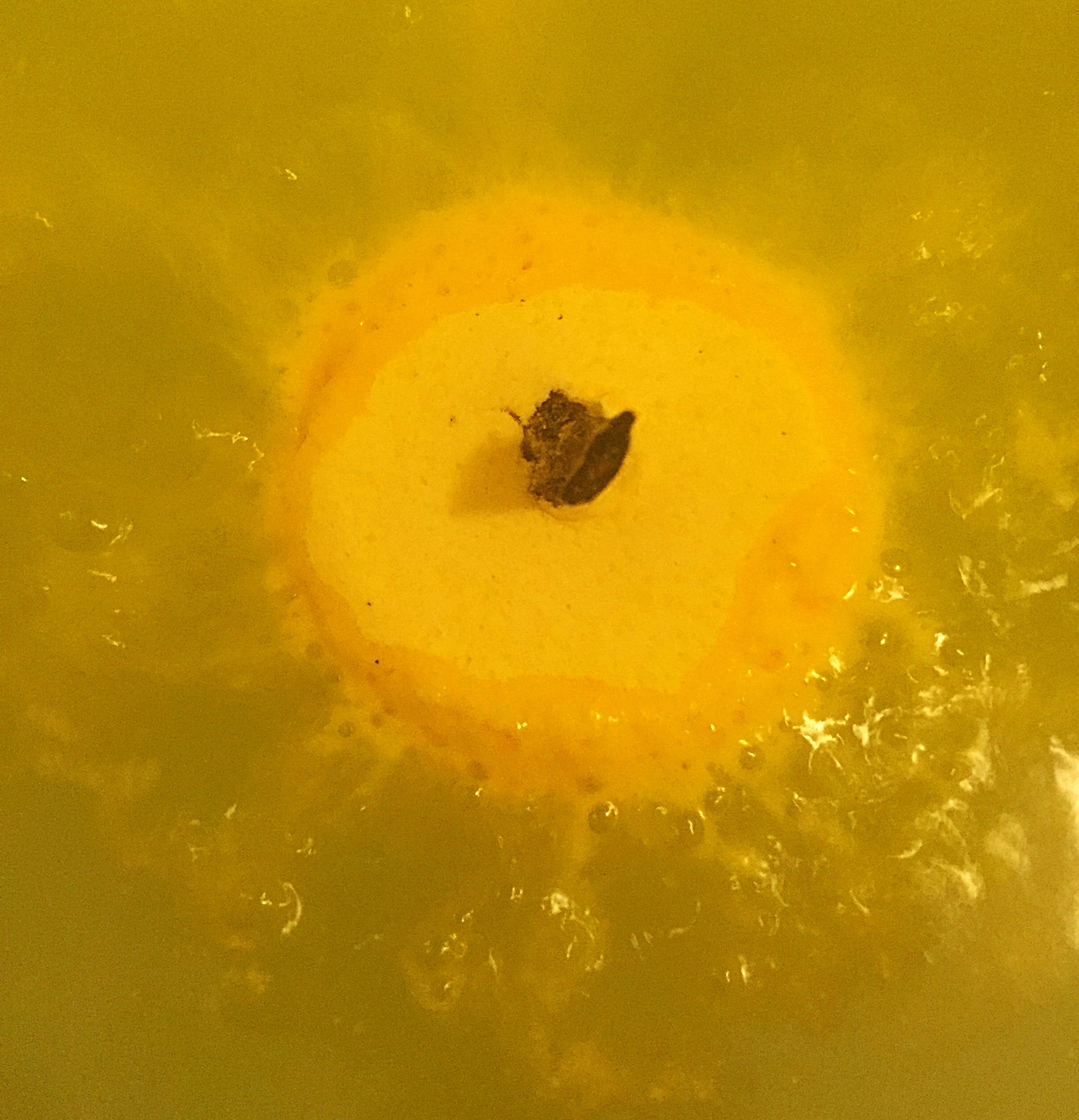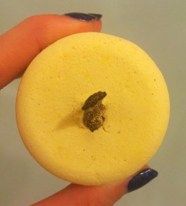 Once popped in the water this bath bomb is quite a quick fizzer. It doesn’t put on much of a show in the bath, but I personally sometimes really enjoy a product that is simple and more reserved, as I find it a little more relaxing. The bath bomb doesn’t produce much of a foam, but does turn the water a lovely light yellow colour. As the bath bomb dissolved its scent really lingers helped by the vanilla pod which floats accross the water diffusing it scent when mixed with the warm water.
