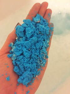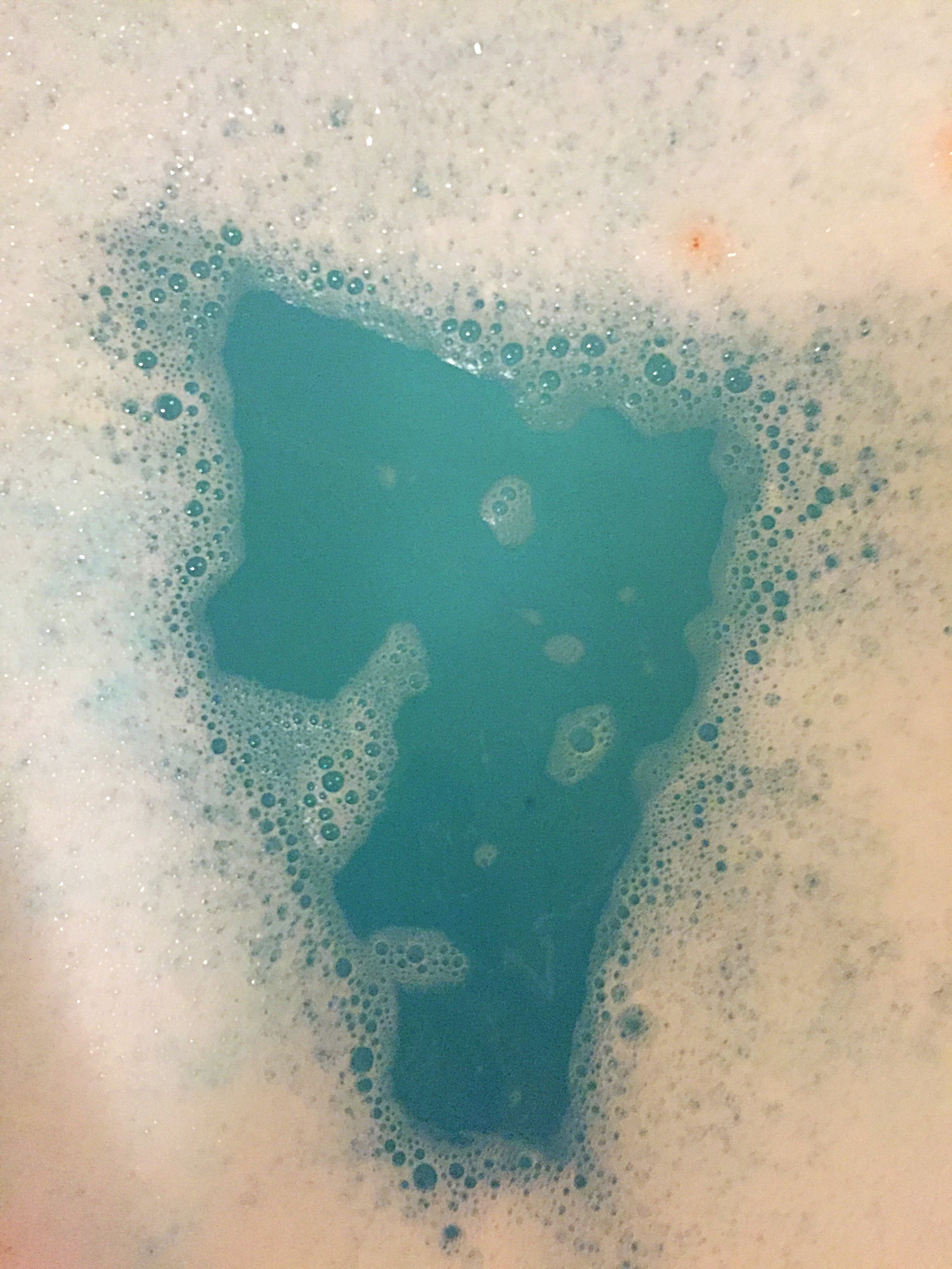 Once crumbled under running water this bubble bar produced a rather impressive amount of bubbles for its little size. It also turned the water a very vivid bright blue. I did however find the scent to disappear quite quickly but I did only use half the product do I guess the more you use the greater the scent.