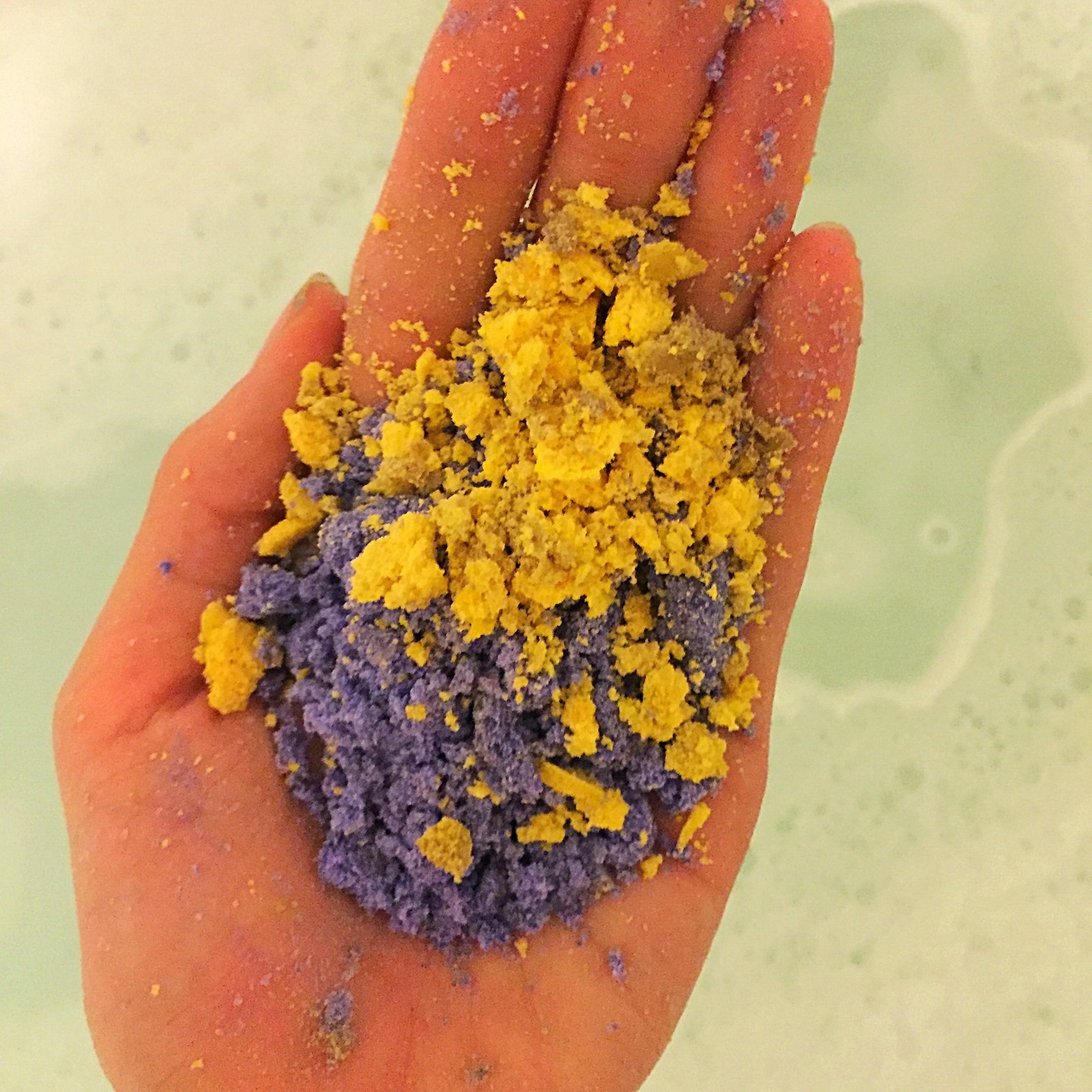 Ingredients- Sodium Bicarbonate, Cream of Tartar, Sodium Laureth Sulfate, Lauryl Betaine, Perfume, Cocamide DEA, Irish Moss Powder, Jasmine Absolute, Ylang Ylang Oil, Linalool, Limonene, Hydroxycitronellal, Gardenia Extract, Colour 61585, Colour 59040, Iridescent Glitter.