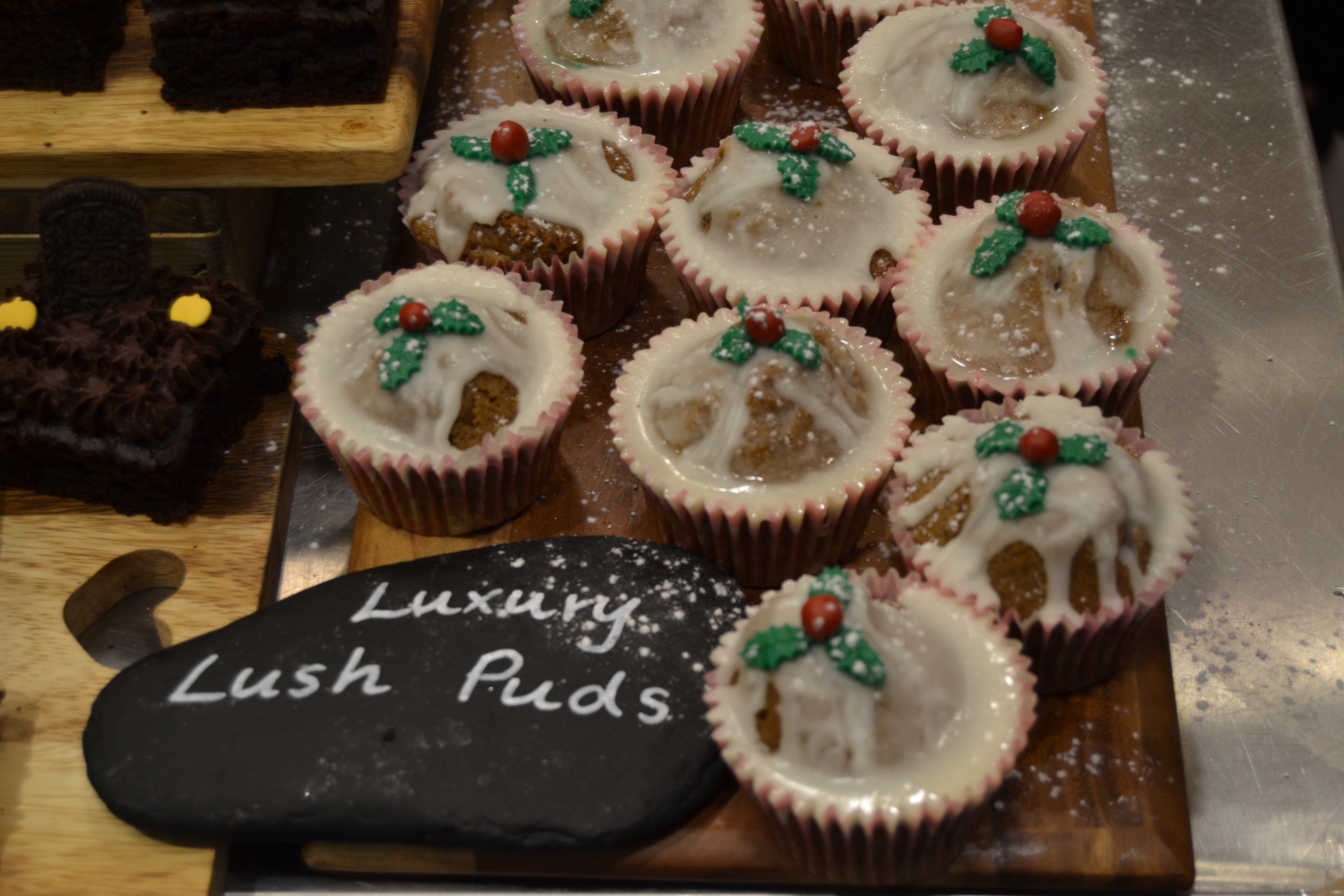 As I arrived at Lush Plymouth I was greeted by the every so lovely Tori and had time for a mix and mingle with all the other bloggers who attended the event! While we where getting to know every one we kicked the party of in Christmas style with cake! Know these were not any old cakes, they were the most adorable, most wonderful Lush inspired cakes I have ever seen! The amazing V is for Veggie had made little Peeping Santa cakes, luxury lush pud Cup cakes and banana Oreo Brownies.