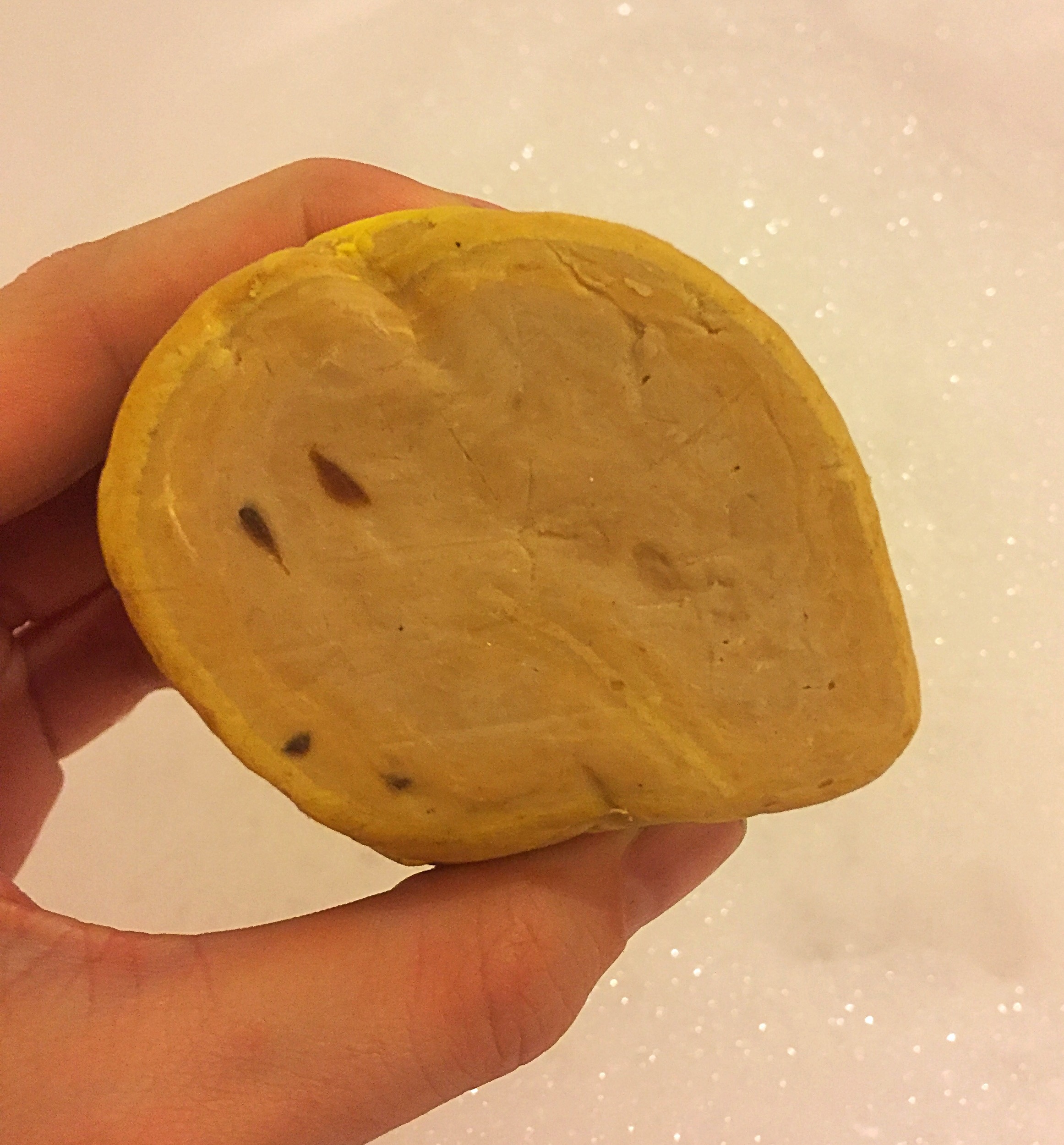 My favourite way I have found to use a Roulade is to scoop a nice handful out and then almost use it as a shower gel. The outside of the Roulade is made of melon pulp which not only means that no packaging is needed, it also means that if you wish to you could use this Roulade in the same way as a soap. Although soft it does hold its shape pretty well and if used this way lasts for a very long time.