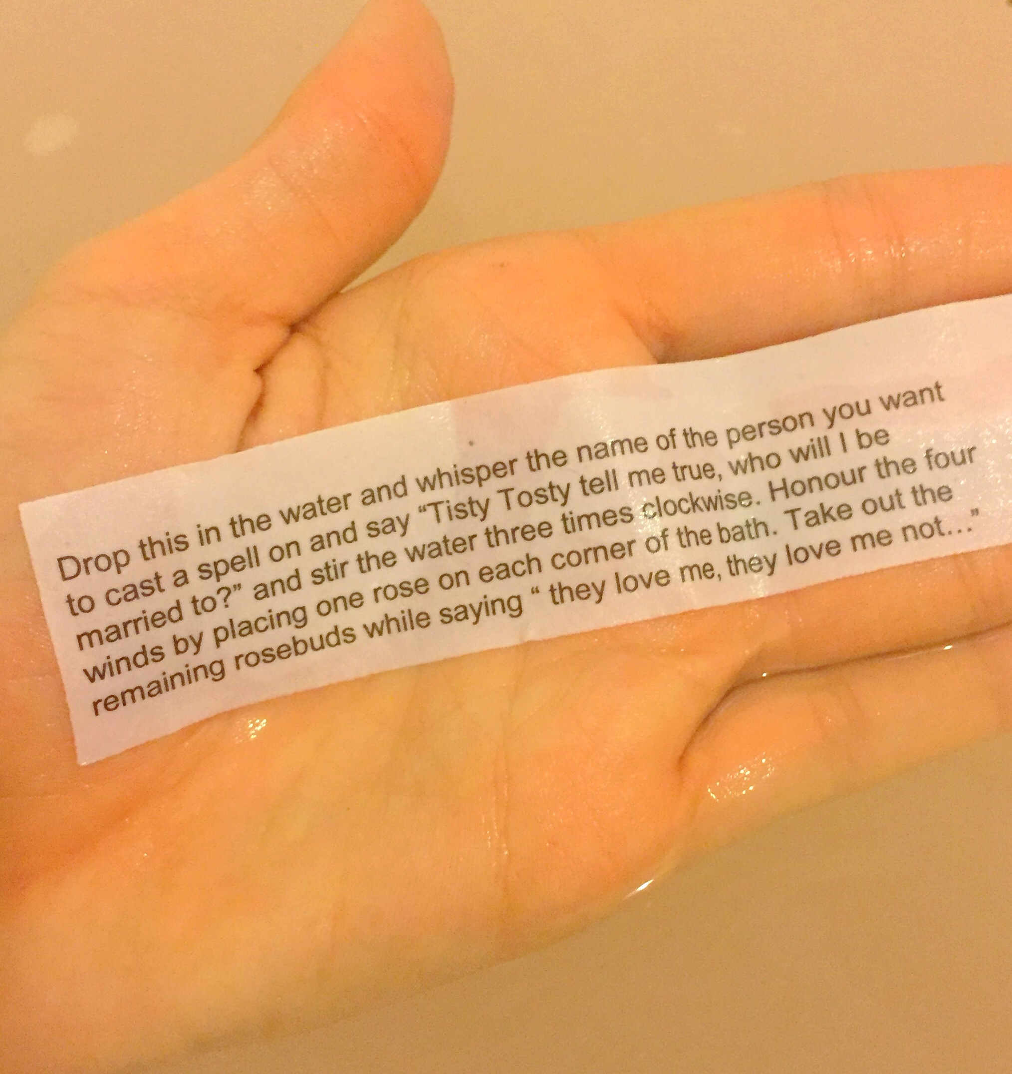 The original version of the bath bomb turns the water a milky white colour, where the Valentine’s specials turns the water a pretty milky pale pink (I defiantly prefer the pink version). As the bath bomb dissolves the rose buds float across the surface of the water which adds a lovely romantic touch ( don’t worry they are very easy to pick out the water) and in the Valentine’s Day special your love potion is released which you can read aloud to create your own love spell (a wonderful Valentine’s Day touch).