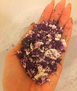 The Baa Bar bubble bar is a lot smaller than most bubble bars from Lush although you would still get a good two baths out of this bubble bar. Once the outside of this bubble bar is broken you will reach a rich purple middle, which I totally wasn’t expecting. Once crumbled under running water you are left with mountain of soft bubbles and a very beautiful deep purple water.