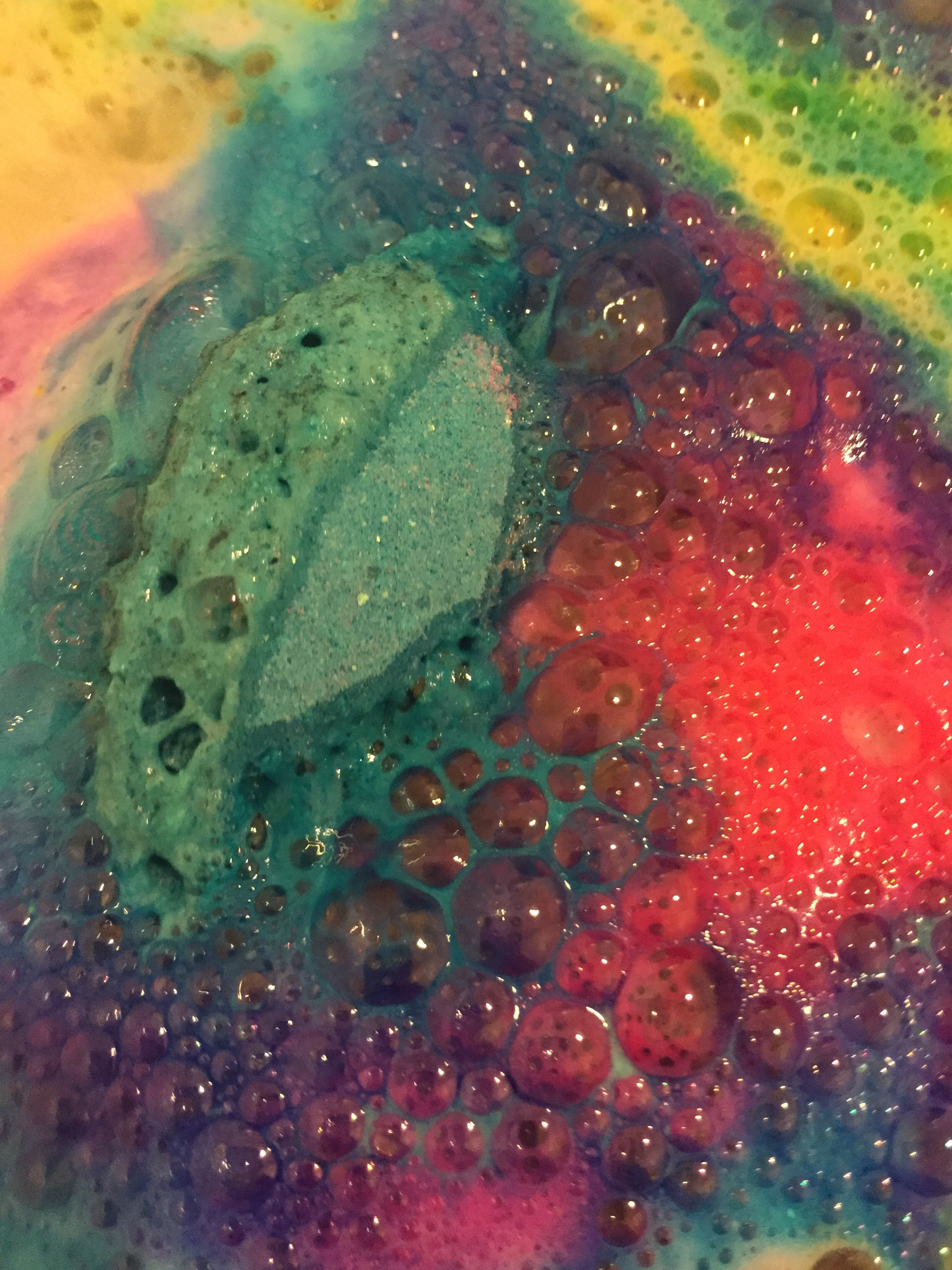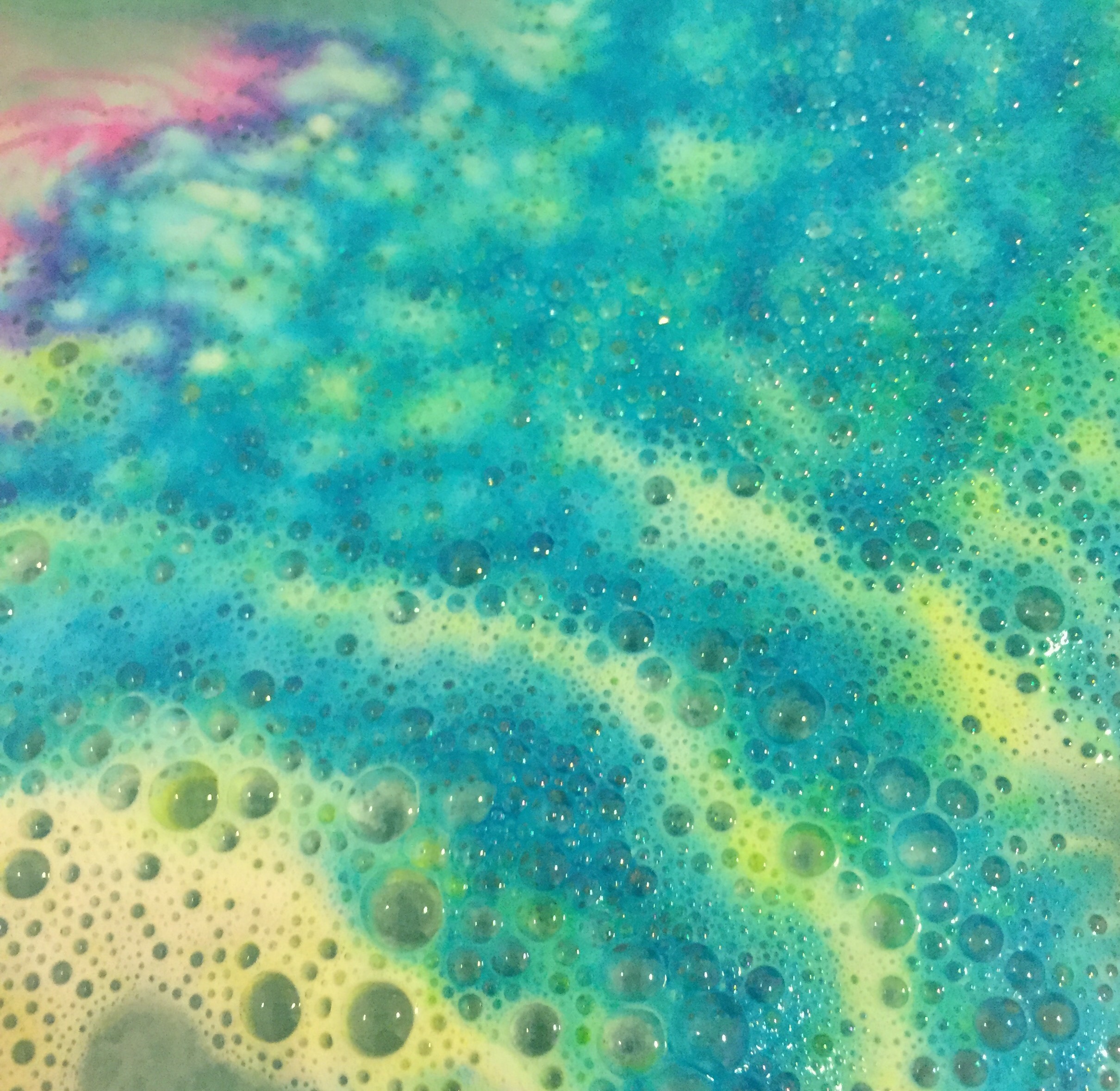 INGREDIENTS: Sodium Bicarbonate, Citric Acid, Perfume, Popping Candy, Vetivert Oil, Tonka Absolute, Vanilla Absolute, Cream of Tartar, Water, Titanium Dioxide, sodium Laureth sulfate, lauryl betaine, coumarin, eugenol, linonene, Calcium Sodium Borosilicate, Tin Oxide, colour 42090, colour 45410, colour 14700, colour 17200