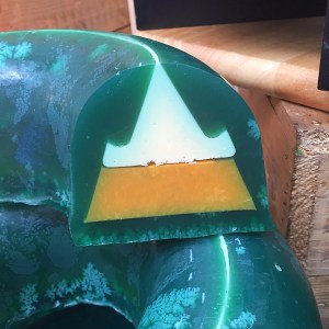 The first soap that I decided to try out of this years range was the Hidden Mountain soap. The design of this soap is what firstly drew me to it. Dark green in colour this soap looks very mystical and once a slice is cut the hidden middle is revealed. This soap is very beautiful and as always very spectacular when you see the whole soap on display in store.