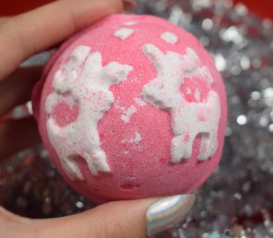 The design of this bath bomb is just as wonderful as its scent. It’s has a very hygge feel about it and is designed to look like a traditional Christmas sweater. With a gorgeous red base colour, it is detailed with two very cute little white reindeer. It’s super Christmassy design would make this bath bomb a perfect stocking filler.