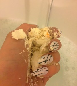 The Snowman bubbleroon in fact has a beautiful fresh, sweet lemon scent. Containing Sicilian lemon and lemon myrtle oils the scent is very uplifting and will remind you of warm summer days. The lemon scent isn’t sharp and zesty, but more muted and gentle it reminds me a little of lemon ice cream.