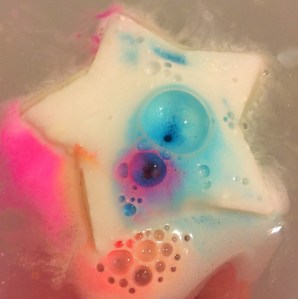 I found the scent of this bath melt to be a lot weaker than it’s older self, however when placed into warm water the scent did get a little stronger. Containing ginger oil, lavender oil and lime oil the scent of the Star Light Star Bright bath melt is beautiful, it is a lovely warming and relaxing scent but defiantly not overpowering like some ginger products.