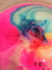 Once this outer shell has melted it reaches its bath bomb centre which slowly fizzes away creating a stream of bright blue and pink in its wake. This bath melt is defiantly a lot prettier in the water now and once fully dissolved it turned the water a beautiful shade of purple.