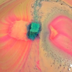Once in the water the Love Boat bath bomb is quite a quick fizzer , as it’s speed across the surface of the water it produces waves of pink, blue and yellow foam. I loved the display that this bath bomb created in the water and if you love making bath art then this is defiantly a bath bomb for you.