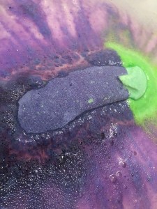 Once in the water the Aubergine Bath Bomb is a very quick fizzer. As it fizzes away it creates waves of purple, green and blue foam. Although it doesn’t take long for this one to totally dissolve it does create the most beautiful display in the water. This bath bomb also turns the water a stunning shade of purple and is surprising very very glittery!! I did come out of my bath sparkling quite a lot.
