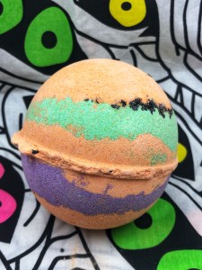The Mercury Retrograde Bath Bomb is a beautiful orange colour with streaks of purple, green and black running throughout. It really is a eye catching multi coloured wonder.