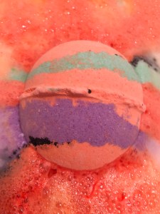 Once in the water the Mercury Retrograde is a nice slow fizzer. As it bobbed around the surface of the water it created a stream of bright orange followed by purple, pink, green, black an white and it whizzed round and round. The scent was incredible when mixed with the warm water. It created a very warming aroma which would be perfect for easing sore muscles or soothing a winter cold. I also found the water to be very silky soft and moisturising on the skin which was a lovely added bonus.