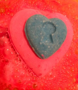 Once in the water the love locket Amazeball is quite a quick fizzer, so quick in fact my camera didn’t have time to focus. it is also quite a heavy bath bomb so don’t be surprised if it does sink to the bottom of your bath tub. As it dissolved it creates a stunning pink display as cross the surface of the water complete with multi coloured specks from the tiny hearts inside.
